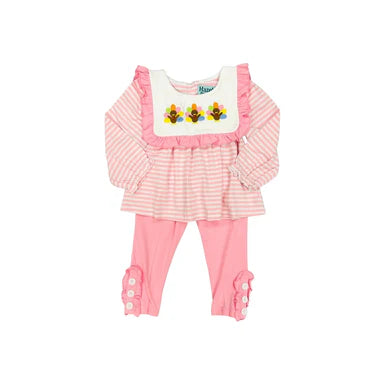 Hazel Blue Pink Stripe Turkey Applique Legging Set