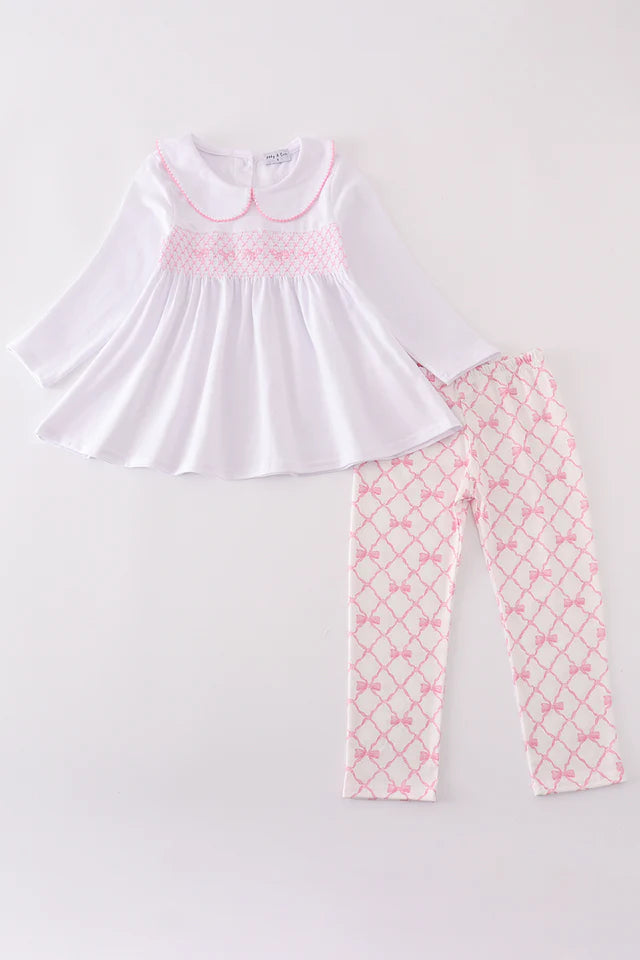 Pink bow smocked pants set